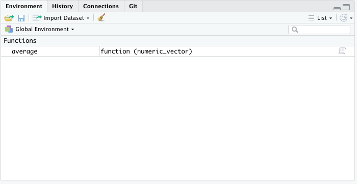 Once we have created our function, you will see it under the Functions section in the Environment tab.